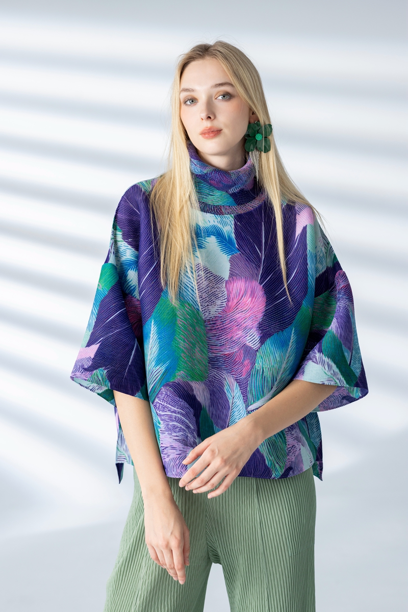 夏日盛宴高領寬袖上衣