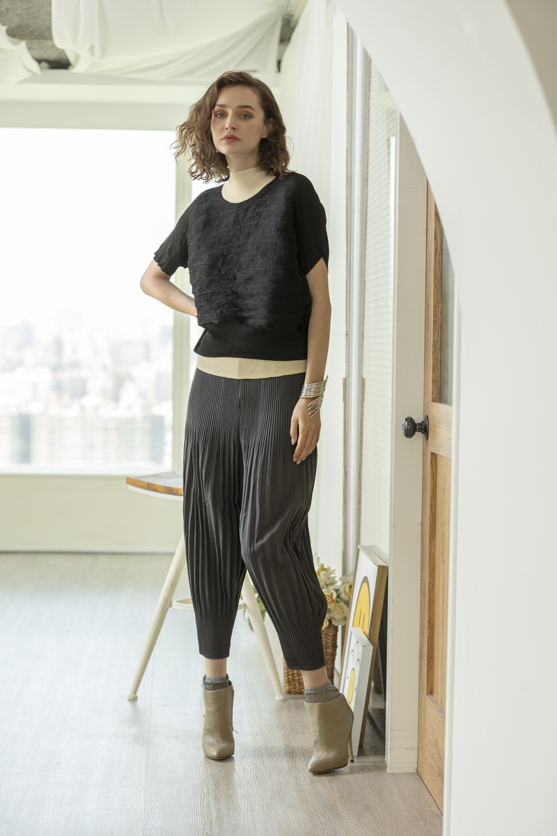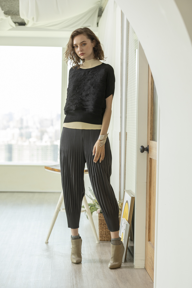 橫褶修身長褲